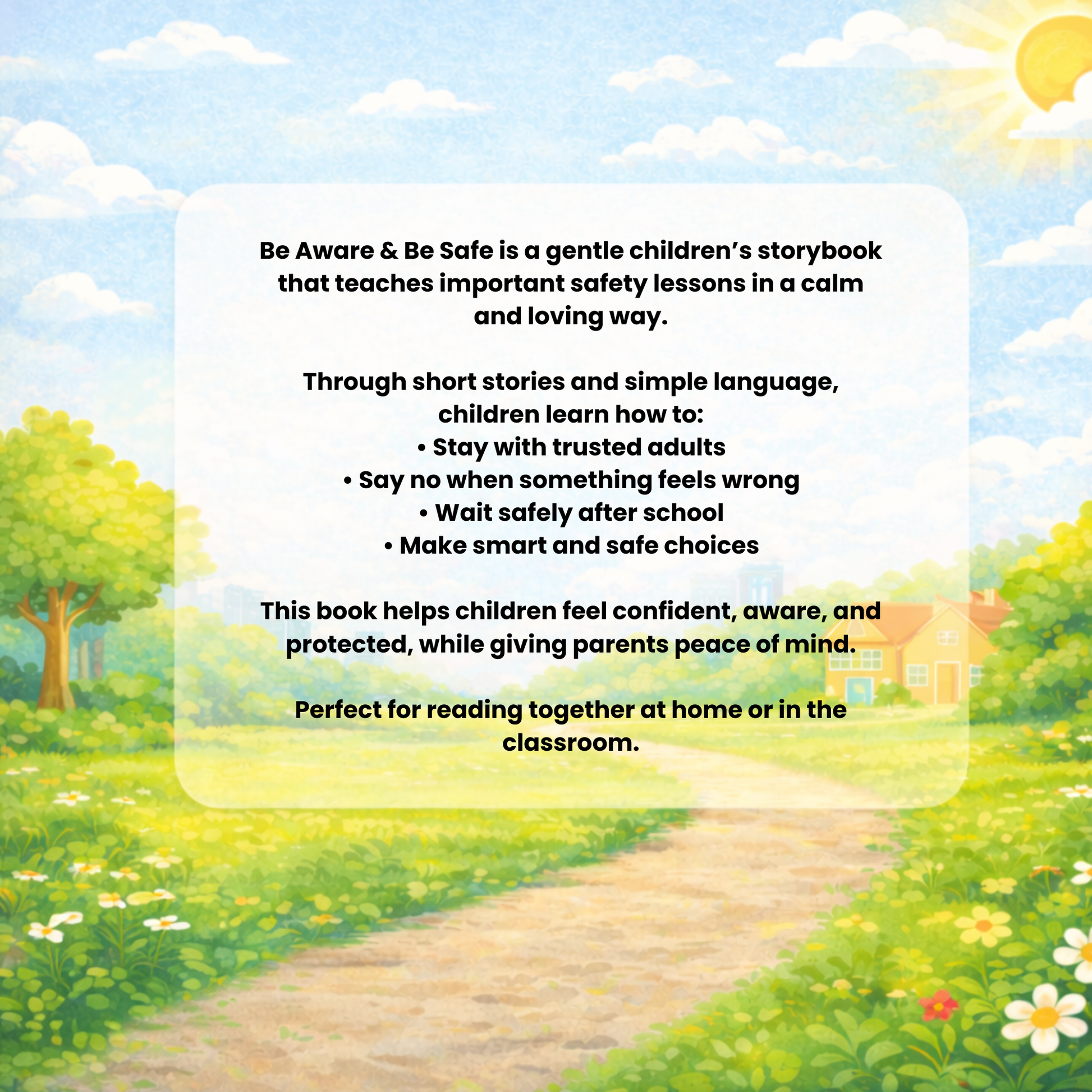 Be Aware & Be Safe is a gentle children’s storybook created to help young kids understand safety in a calm, loving, and age-appropriate way.